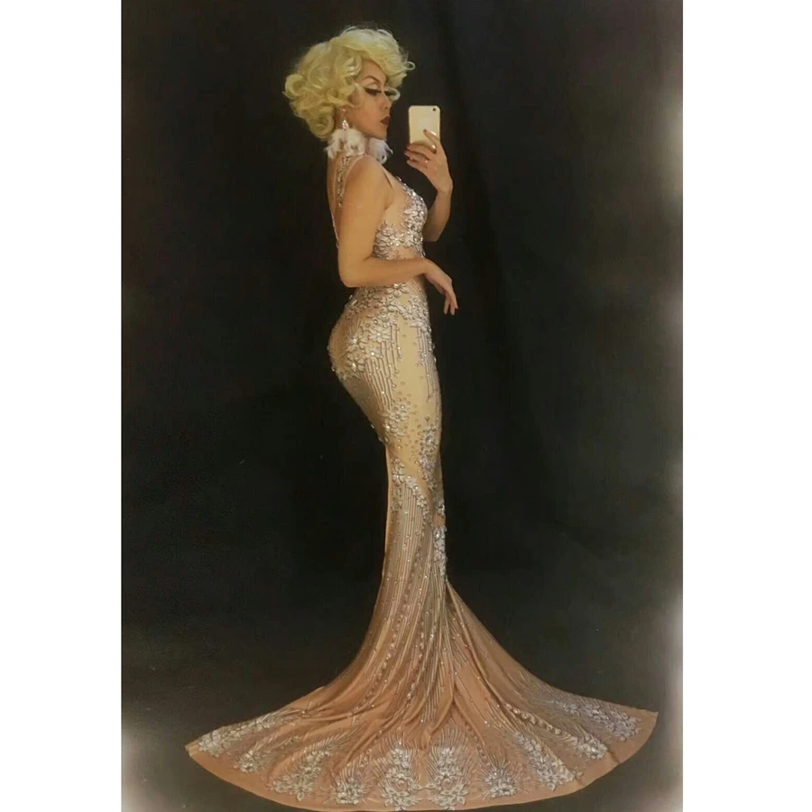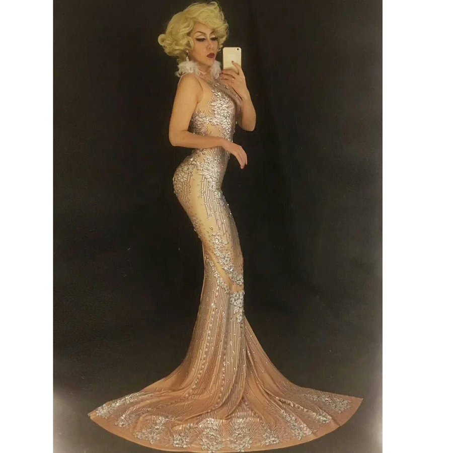 Best Deal Female Sexy Crystal Mermaid Dress Rhinestone Skinny Dress Party Show Performance Wear Women Dj Sing