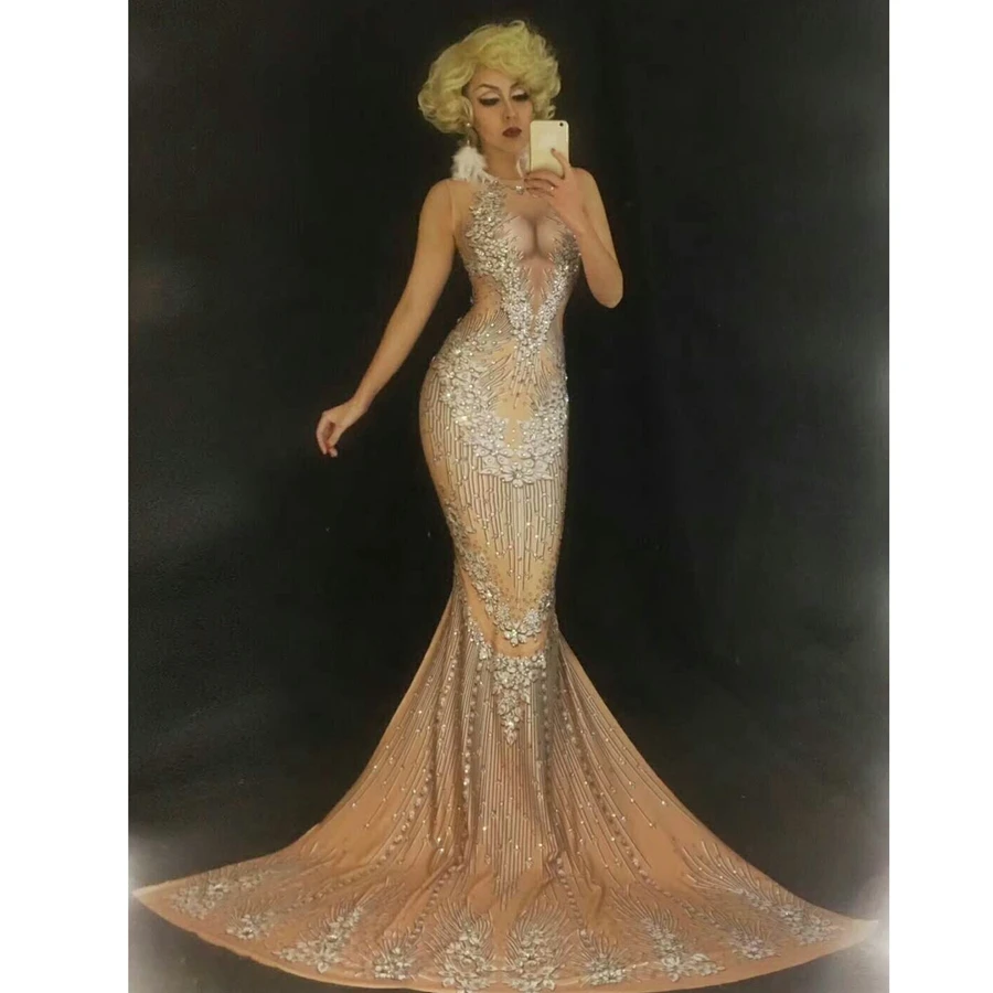 Flash Deal Female Sexy Crystal Mermaid Dress Rhinestone Skinny Dress Party Show Performance Wear Women Dj Sing