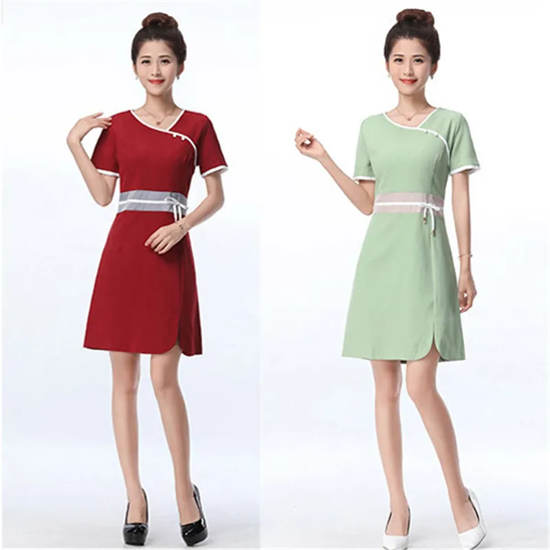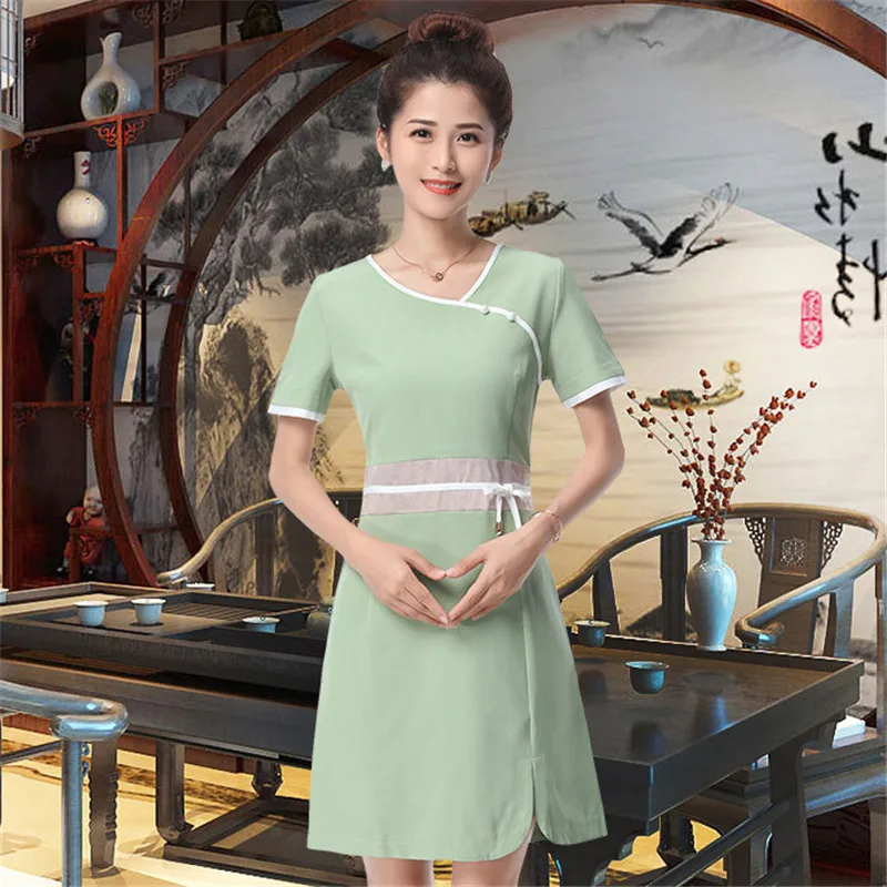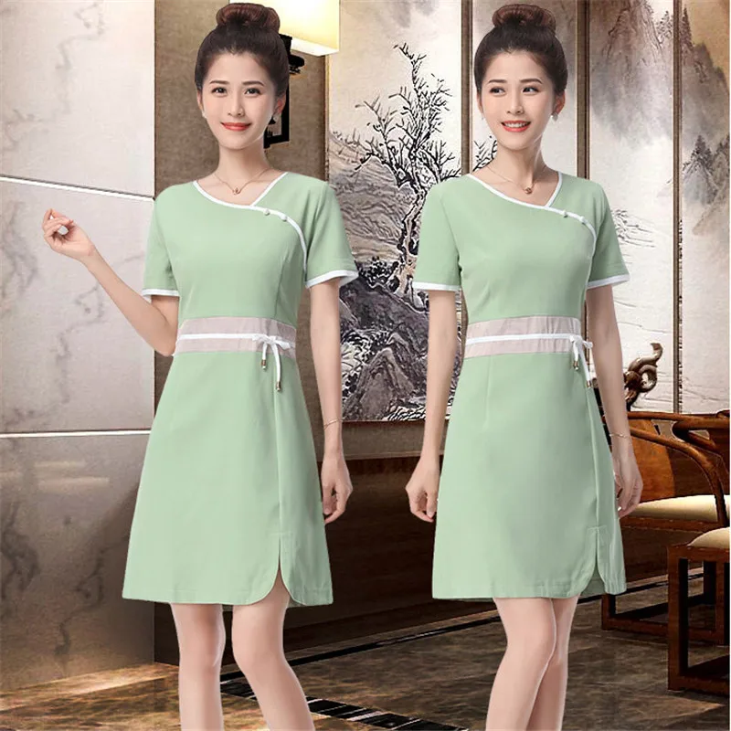 Hot Promo Women V Neck Short Sleeve Oriental Style Thai Massage Spa Sauna Shop Beauty Salon Beautician Slim W