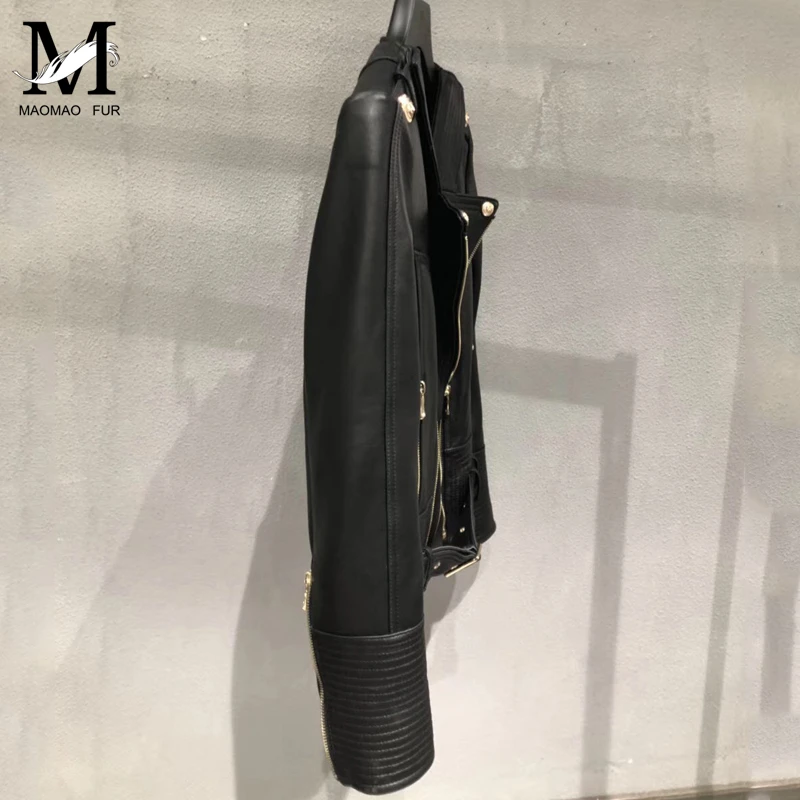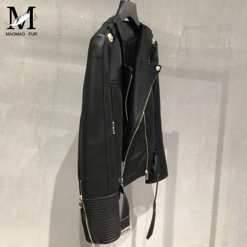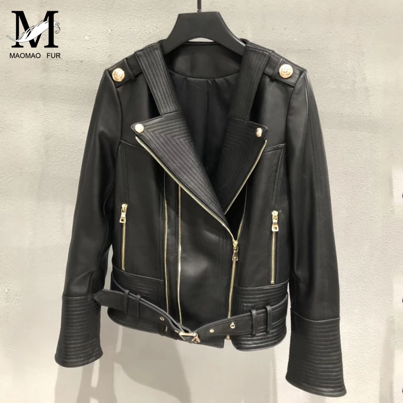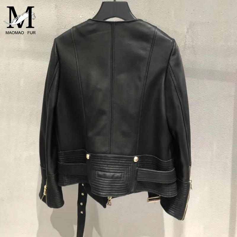 Mega Discount Womens Leather Jacket Belt Sheepskin Jacket Short Lambskin Black Female Genuine Leather Overcoat La