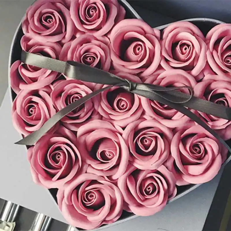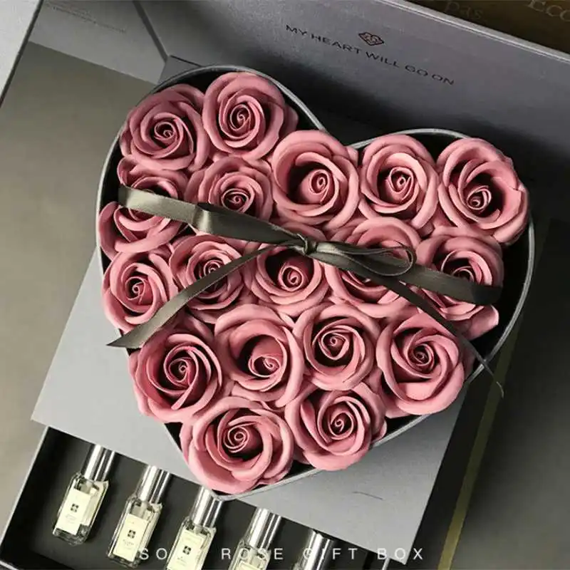 Super Promo Hot Soap Rose Flower Wedding Girlfriend Birthday Perfect Gift For Any Women- Gray+Red Gift Box